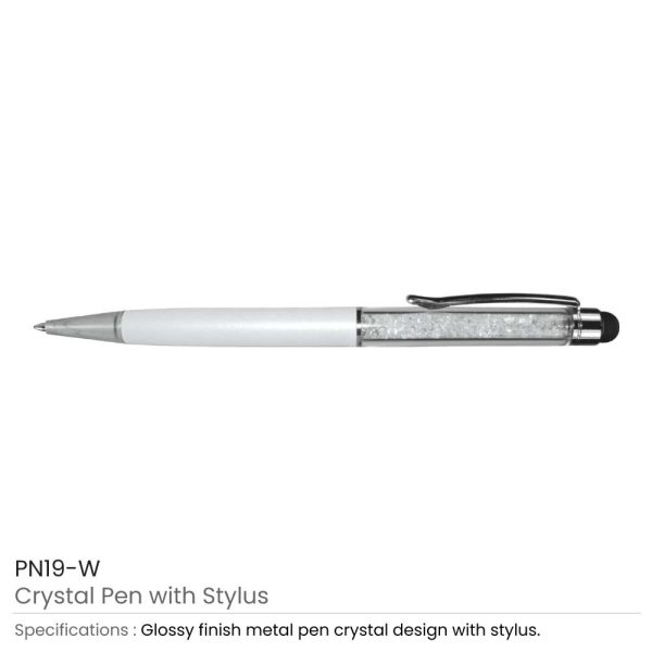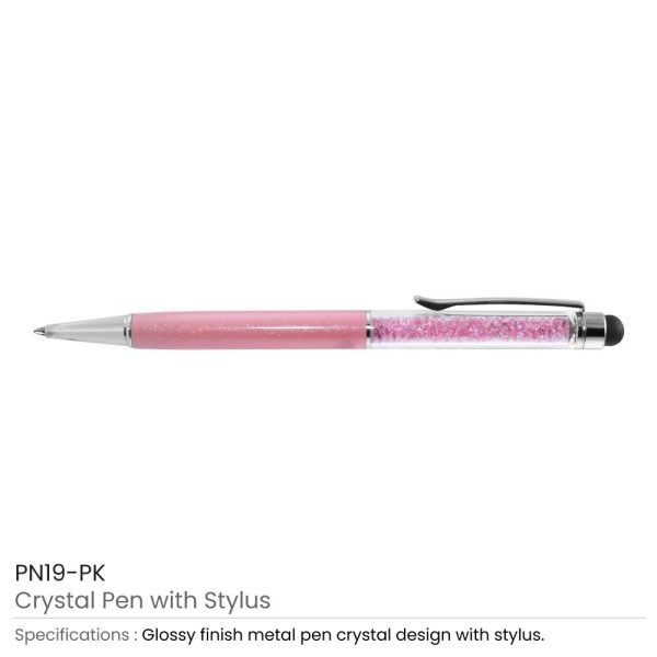 Crystal metal pens with a stylus are luxury pens. They had been created with shiny metallic material and crystals on glass. Thus, it is glossy and durable at the same time. This pen comprises a barrel. The lower part comprises glass with crystals while the upper part is colorful. The crystal part gives a shiny finish. Thus, making it more stylish. This pen comes with a stylus. The stylus is present at the top of the pen. Thus, you can use it on your smartphone. It also comes with multiple logo imprinting options. Thus, you can customize the logo of your company on these personalized pens in bulk.