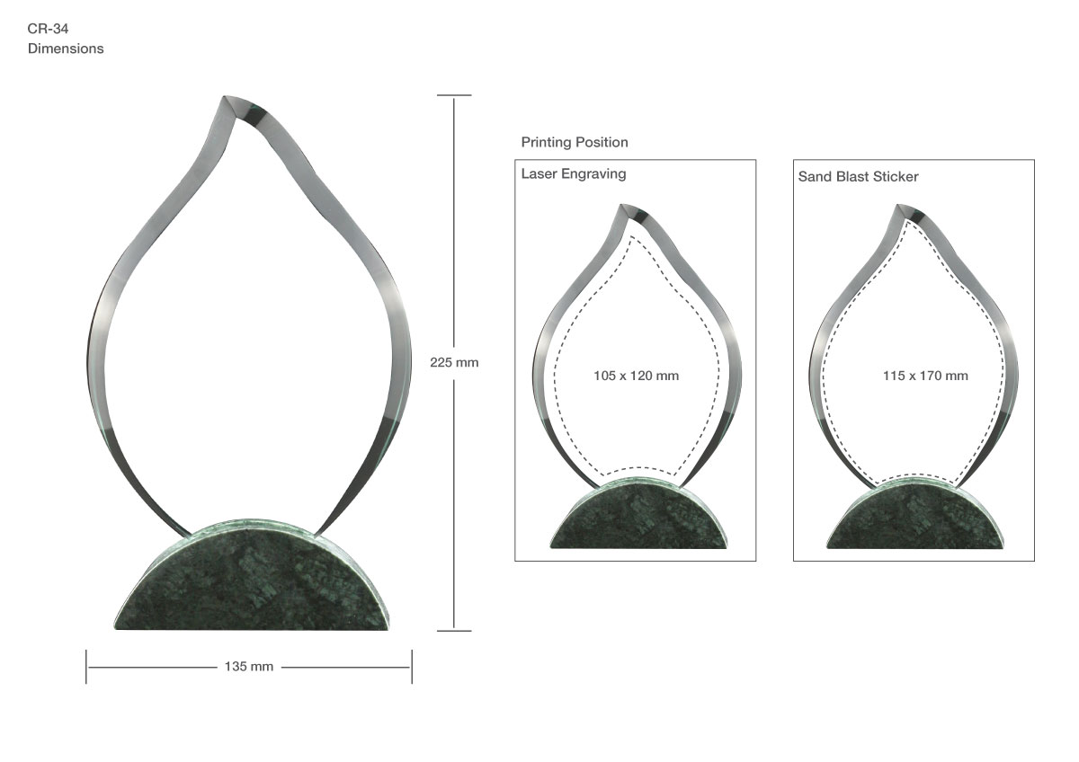 Flame Shaped Crystal & Marble Awards in Hardboard Box