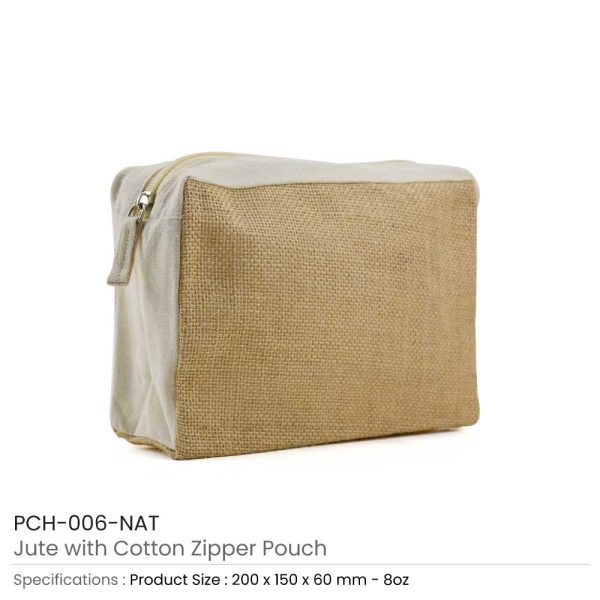 Natural Jute with cotton material zipper pouch with Branding Options.