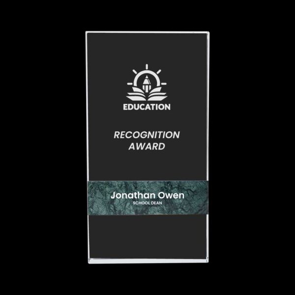 Rectangle Shaped Marble and Crystal Awards packed in the Wooden Box.