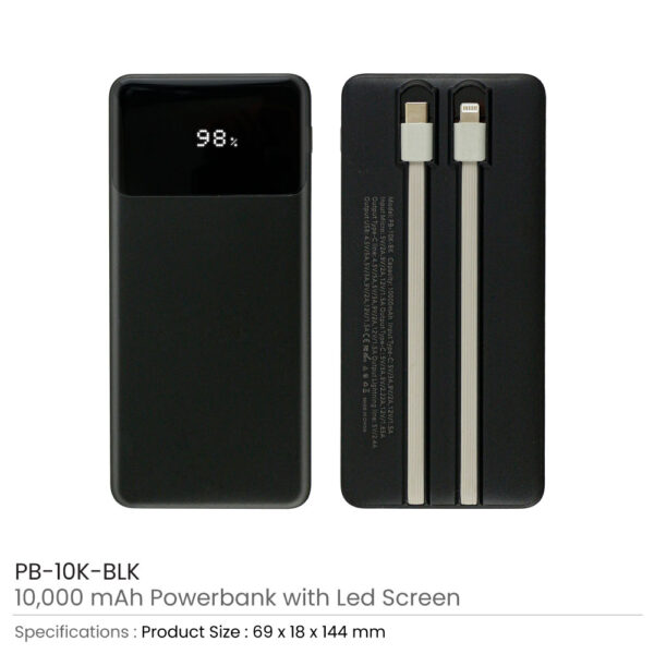 Powerbank with LED Screen 10,000 mAh and Built-in Cables