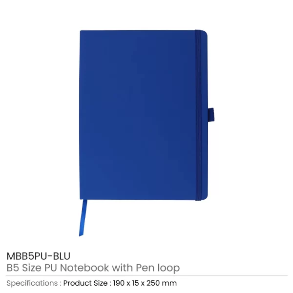 PU Notebooks B5 Size with Pen Loop, Ribbon Bookmark and Elastic Band