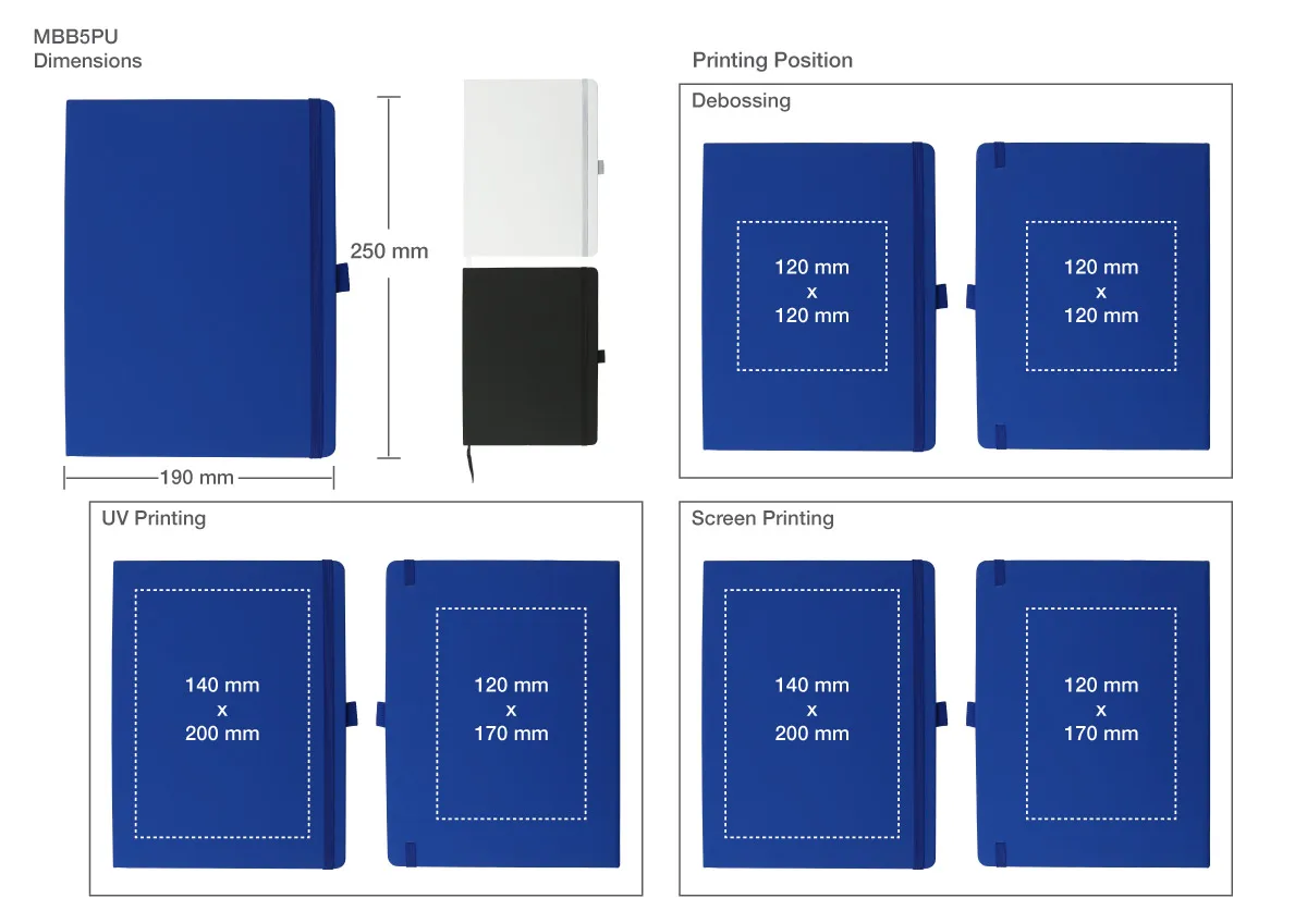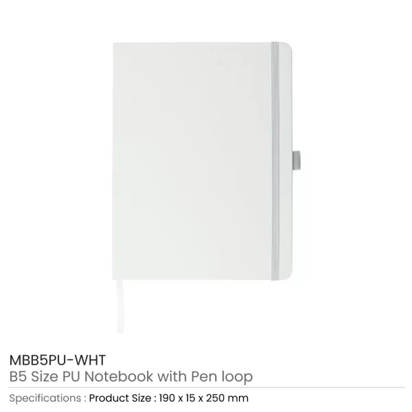 PU Notebooks B5 Size with Pen Loop, Ribbon Bookmark, and Elastic Band