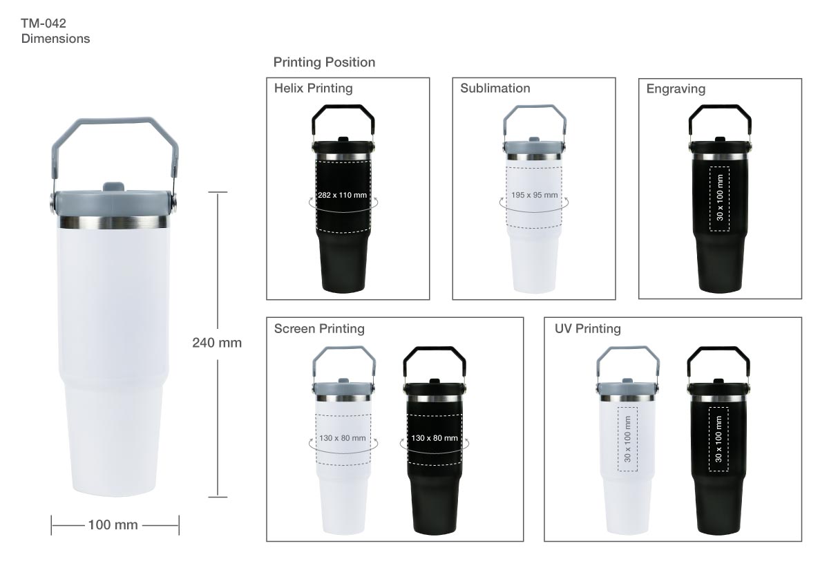 Tumbler in stainless steel double-wall vacuum insulated tumbler with flip-straw Lid and carry handle. The customized vacuum-insulated tumbler is ideal for keeping your beverage hot for hours. These tumblers are durable as they are made with premium quality, stainless steel material. They also come with a double wall design to maintain the freshness and taste of your drink.