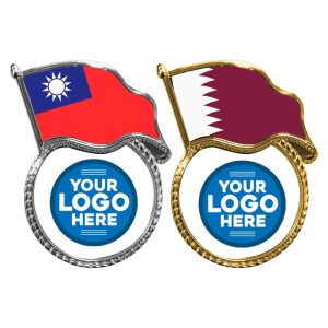 Twin Flag Metal Badges Golden Imprint Your Country Flag
