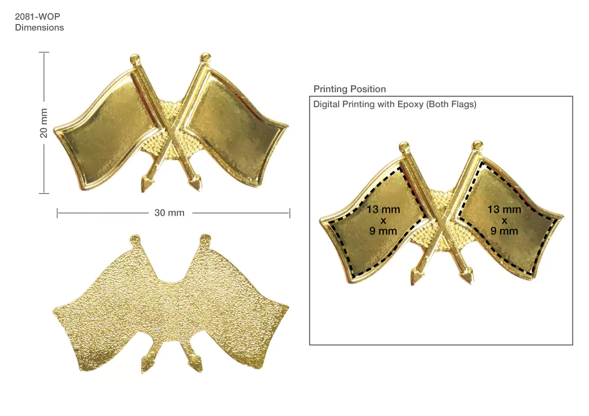 Elevate your collection with this premium Twin Flag Design Metal Badge. Crafted from high-quality metal and finished with a striking golden color, these badges feature a unique twin flag design that symbolizes unity, strength, and heritage. Ideal for collectors, enthusiasts, or those who want to add a touch of elegance to their accessories, these badges are designed to stand out.
